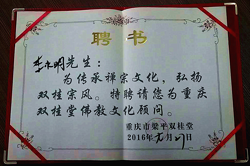 2016年1月27日,重慶市佛教協(xié)會會長、梁平雙桂堂方丈釋身振大和尚,蒞臨重慶旅游與文化研究院向李永明院長頒發(fā)聘書,聘請李永明院長擔(dān)任梁平雙桂堂佛教文化顧問。李永明院長是梁平縣人民政府文化旅游顧問,曾經(jīng)為梁平縣黨政干部做過《禪宗文化與梁平旅游》專題講座,并為梁平縣擬定了禪宗文化通俗讀本《雙桂禪風(fēng)》。釋身振大和尚和李永明院長進行了親切友好交談,并就如何挖掘雙桂堂佛教文化、提升雙桂堂品牌知名度、促進雙桂堂文化旅游發(fā)展交換了意見。