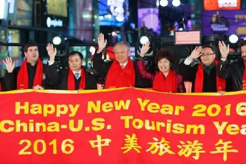 2016新年到來(lái)之際,來(lái)自世界各地的上百萬(wàn)游客歡聚美國(guó)紐約時(shí)報(bào)廣場(chǎng),慶祝跨年活動(dòng)。中國(guó)國(guó)家旅游局駐紐約旅游辦事處在時(shí)報(bào)廣場(chǎng)舉辦了2016“中美旅游年”主題宣傳專場(chǎng)活動(dòng)?!皶秤谓K 感受美好”旅游宣傳片也在紐約時(shí)報(bào)廣場(chǎng)同步滾動(dòng)播放,吸引了眾多游客特別關(guān)注。
